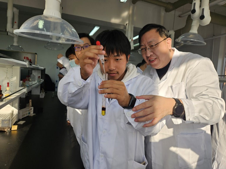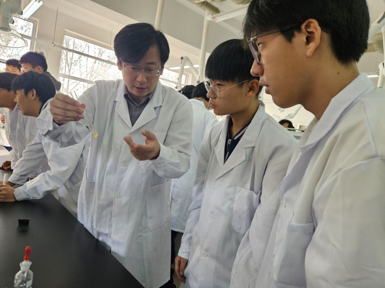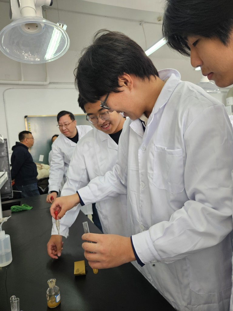 实验室中弥漫着探索新知的惊喜氛围,每个人仿佛都化身为神奇的“魔术师”。各个实验独具特色,犹如一幅幅绚丽的画卷,从不同角度展现出化学的无穷魅力。此次科学研学活动,恰似春风拂面,为课堂教学注入了新的活力,显著增强了课堂的趣味性与吸引力,进而提升了教学质量。石毅副校长亲临现场,悉心指导学生实验,为这场研学之旅增添了温暖的关怀与鼓励。