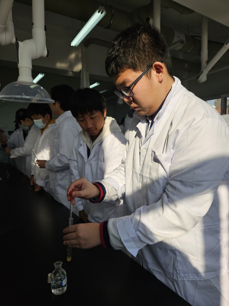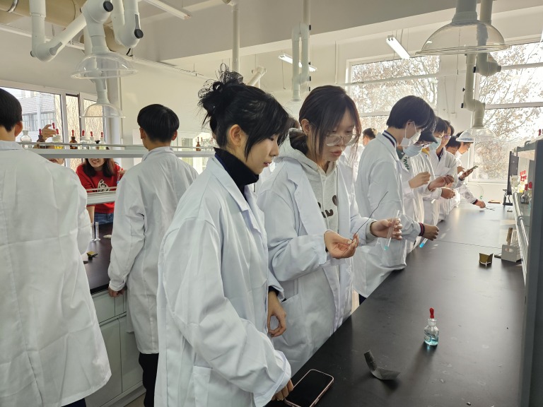 1 月 13 日下午,高二的同学们怀揣着满心期待,踏入河北工业大学化工学院,开启了这场精彩绝伦的实验研学之旅。各实验负责教师详细讲解了特殊仪器的使用要点,并进行了精彩的演示。同学们在教师的悉心指导下,透过奇妙的实验现象,深入探究化学本质,以科学的视角敏锐观察、积极思考,大胆提问,勇敢地探索真理的奥秘。他们顺利完成了三价铁盐鉴定、氢氧化亚铁制备与性质探究、氢氧化铜制备这三个富有挑战性的实验项目。