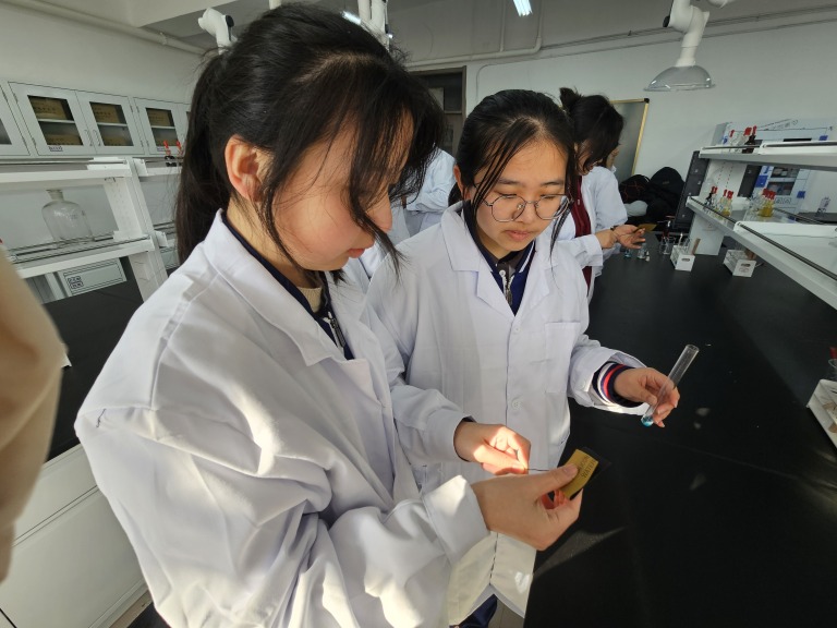 丰富多彩的化学实验宛如神奇的魔法,不仅加深了学生对知识的理解,提升了他们的实际操作能力,更培养了他们实事求是、严谨认真的科学态度。实验室里,同学们认真严谨、配合默契、操作规范,共同完成实验,尽情分享成功的喜悦,用实际行动诠释着对科学的热爱。