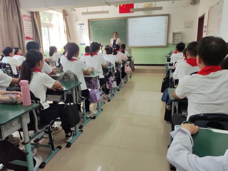 在随后的主题班会上,各班级通过“国旗下誓言重温”“校长寄语解读”“新学期目标制定”等互动环节,将开学初的学校要求转化为具体行动规划。为保障活动顺利推进,德育处提前做好周密部署,安排专人维护秩序,确保教育仪式热烈温馨,同时做到氛围安全和谐。从室外升旗的庄严宣誓,到室内的深情寄语,再到班级的热烈讨论,全流程紧扣“迎新筑梦、立德树人”核心,彰显学校“五育并举”的育人理念。
