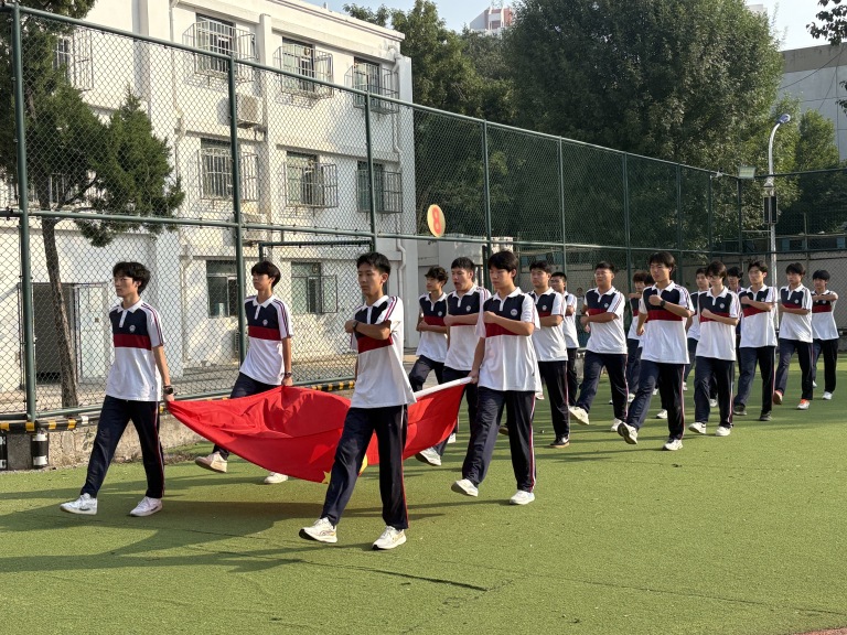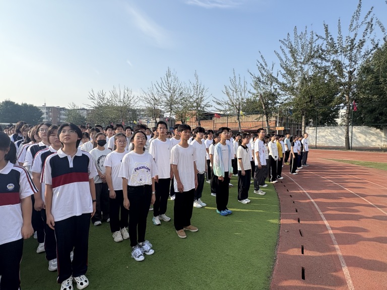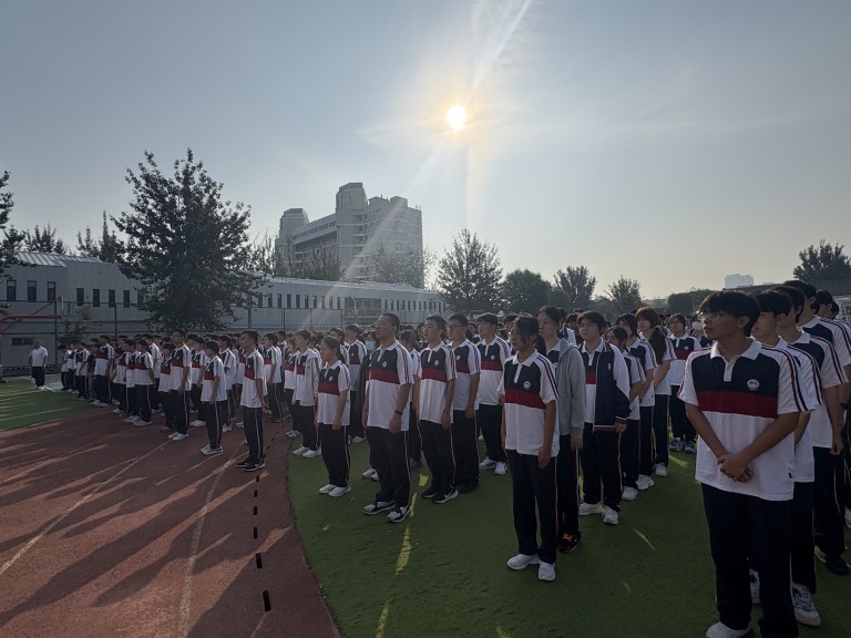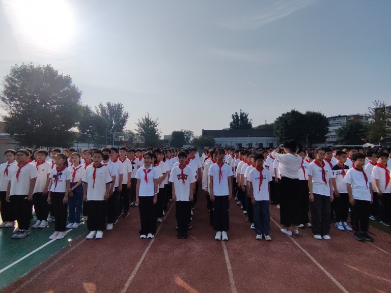 清晨7时45分,全校2300余名师生踏着轻快的步伐,在德育处孙升主任的指引下,按照指定路线有序集结于操场。伴随着铿锵的出旗曲,护旗手迈着整齐划一的步伐护送五星红旗入场,全场师生肃立致敬。当《义勇军进行曲》激昂奏响时,五星红旗在晨曦中缓缓升起,嘹亮的国歌回荡校园,每一颗心都与祖国紧密相连。
