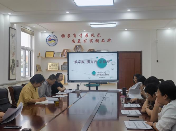 2025年9月18日,河北工业大学附属实验学校召开2026届高三年级开学初教育教学分析会。会议由年级组长赵春英主持,高中教务主任艾丽丽、班主任代表王礼莉、数学学科备课组长周颖、物理学科备课组长樊军先后发言,校长魏艾作总结讲话,全体高三任课教师参会。会议旨在通过精准复盘摸底现状,明确后续教育教学方向,为高三毕业班工作锚定目标,积蓄力量。