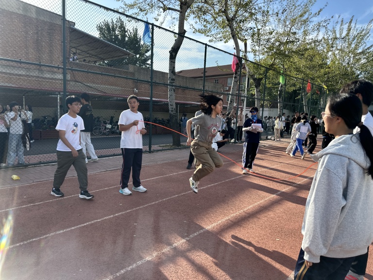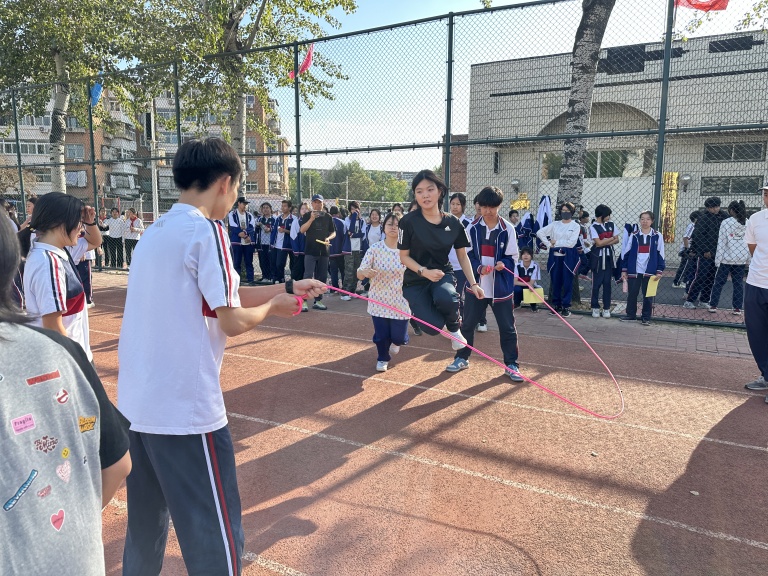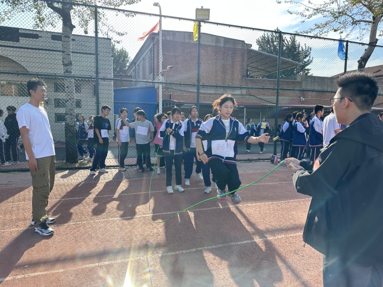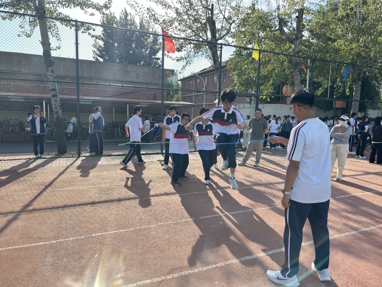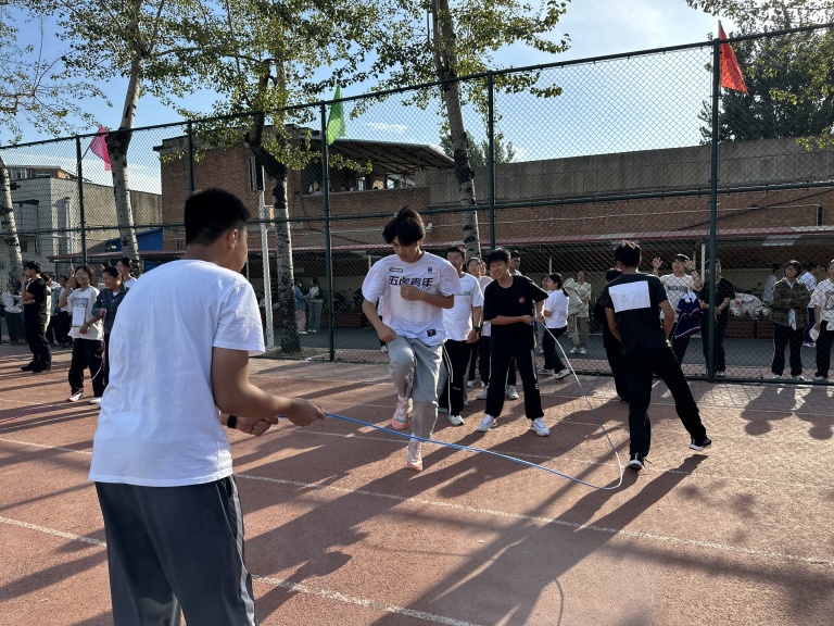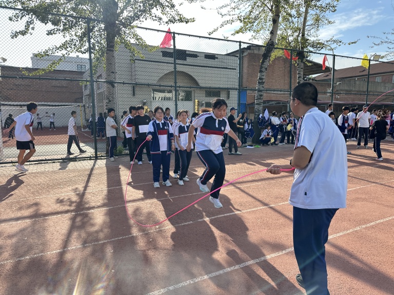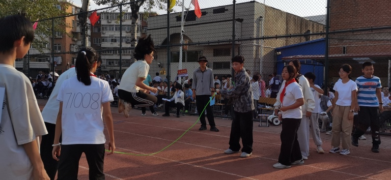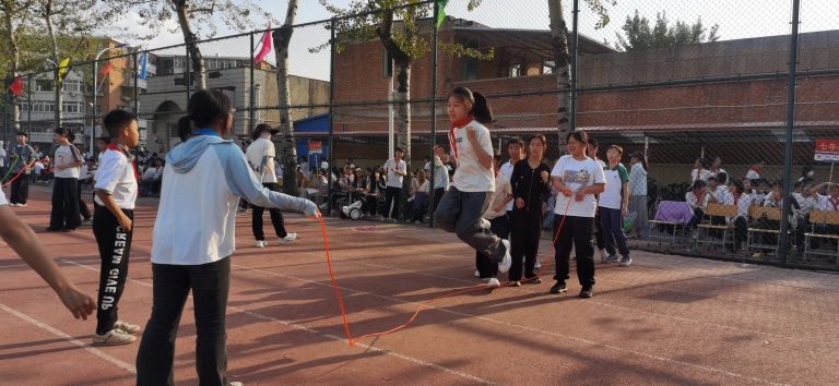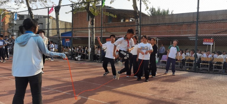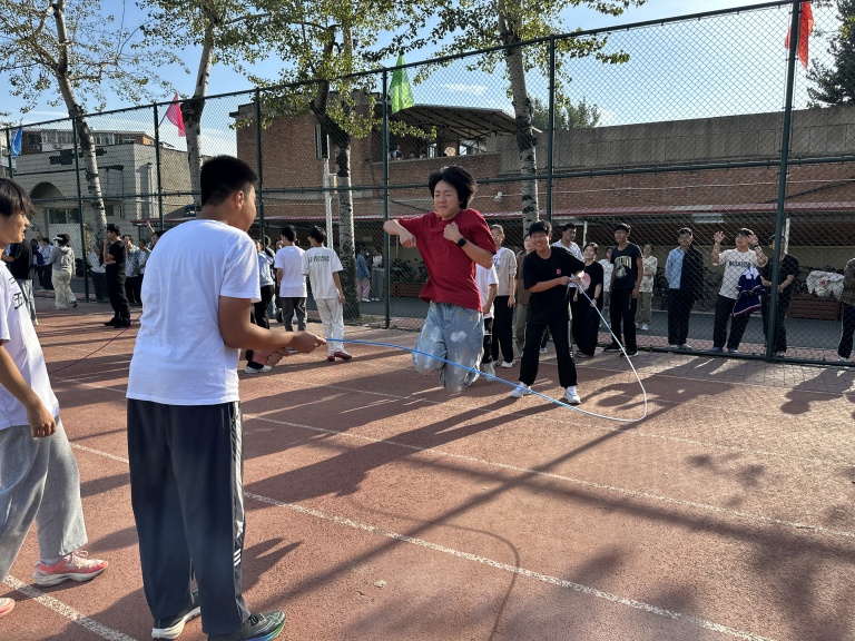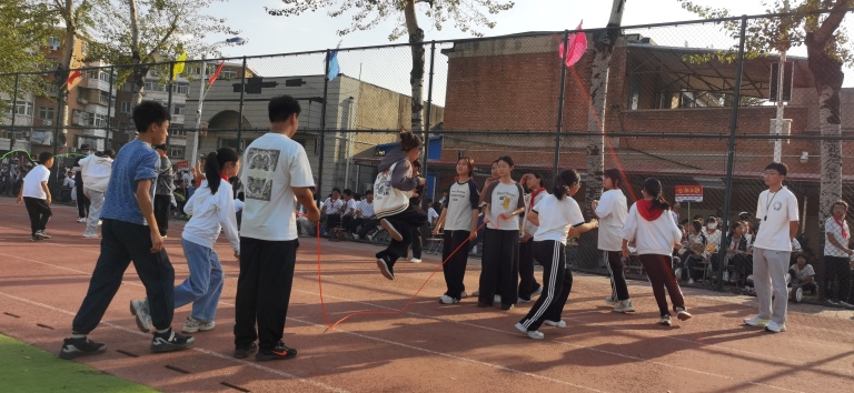 9月28、29日下午,高、初中组比赛如期而至,少年们以拼搏姿态向国庆献礼。长绳比赛率先点燃激情:每班10名队员默契配合,摇绳者稳握绳柄,节奏均匀如钟表滴答;跳绳者鱼贯而入,身影轻快似飞燕穿帘。绳子“呼呼”作响间,计数声与“加油”呐喊交织,偶有绊绳也迅速调整,团队凝聚力在协作中尽显,每一次跳跃都藏着对班级荣誉的守护,对祖国华诞的祝福。