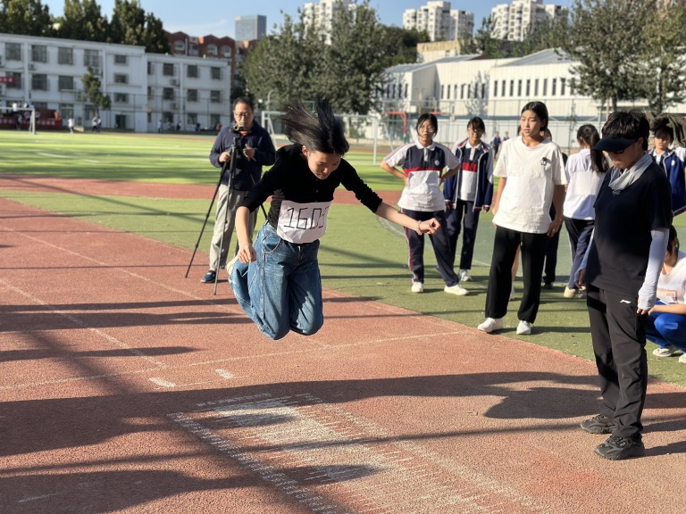 立定跳远项目中,同学们认真调整姿势,屈膝、摆臂、起跳,力求跳出最佳成绩。每一次进步,都引来阵阵欢呼;每一次突破,都彰显成长的力量。