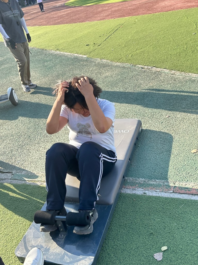 女子仰卧起坐赛场更显热闹:选手们平躺屈膝、双手抱头,随裁判口令快速起坐,脸颊的汗水、急促的呼吸,都挡不住坚持到底的决心,身边同学的计数声,是最温暖的鼓励,也为中秋添了一份热闹与温情。