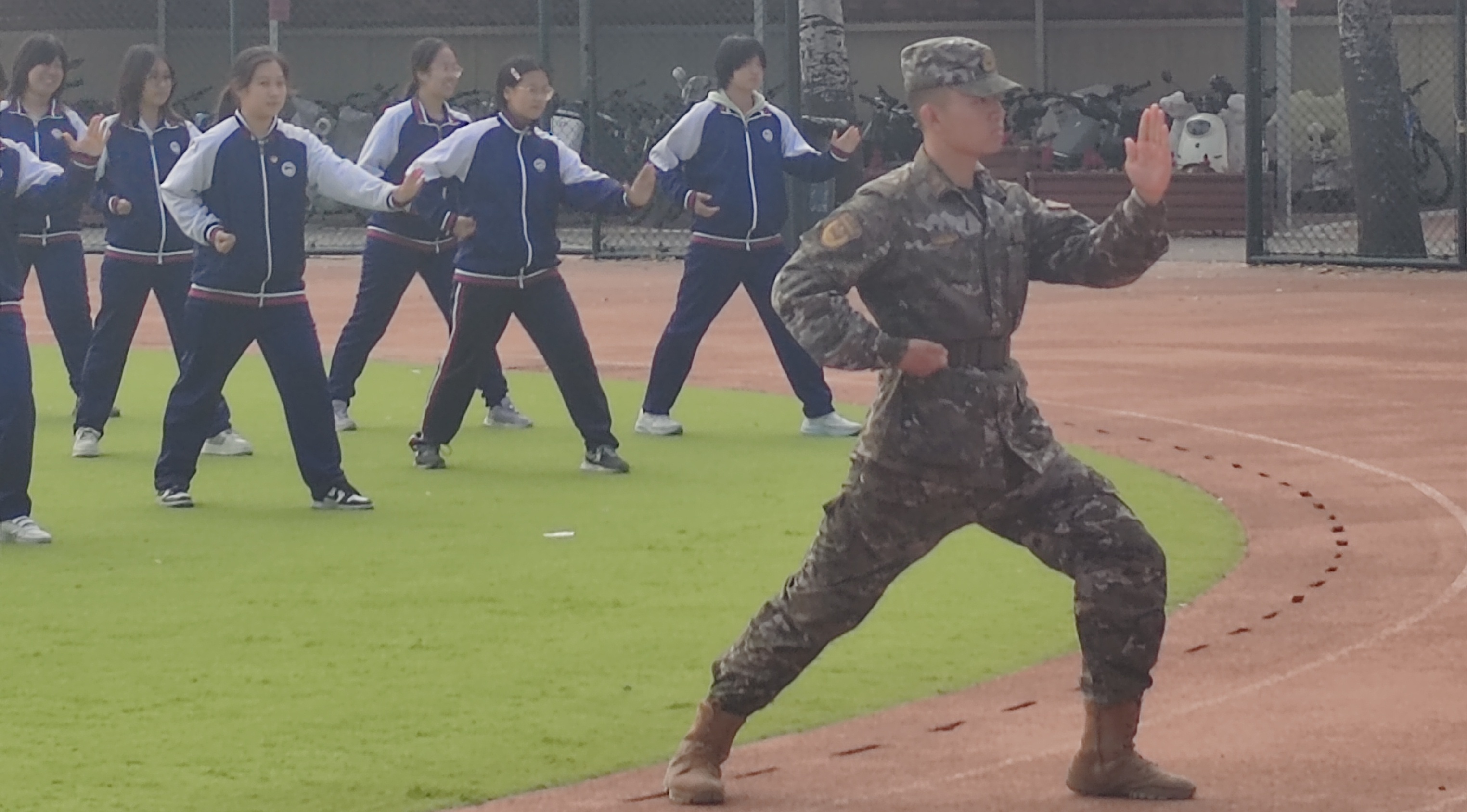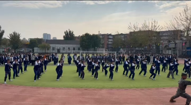 14天的磨砺中,校园的晨光与暮色见证着蜕变。操场上,“稍息、立正、齐步走”的口令声此起彼伏,学子们踢腿如松、摆臂如钟,校服虽无迷彩的厚重,却同样承载着“站如松、坐如钟”的军人风范。汗水浸透衣衫,又被秋风吹干,留下的是日渐整齐的队列与愈发坚毅的眼神。军训不止于体能的锤炼,更有两场深刻的文化与精神滋养,让少年们在磨砺之外,读懂责任、感悟初心、涵养情怀。
