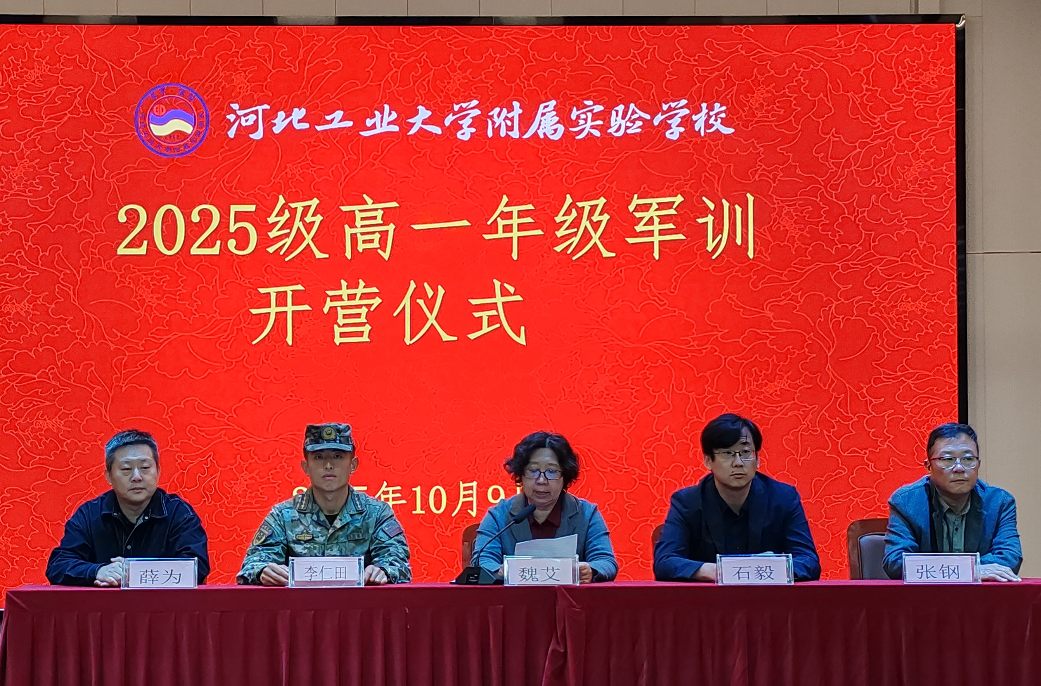 10月9日的开营仪式上,旌旗轻展,身着整齐校服的学子们身姿初立,目光中满是对新旅程的期待。魏艾校长代表学校领导干部在开营仪式上讲话,为军训正式拉开序幕,以“宝剑锋从磨砺出,梅花香自苦寒来”开篇,字字恳切:“军训是高中生涯的第一课,不是简单的队列训练,更是你们淬炼意志、凝聚集体力量的修行。”校长的寄语如春风化雨,既点明了军训“磨意志、塑品格”的核心意义,更让学子们明晰了“以少年意气赴成长之约”的前行方向。话音落时,现场掌声与秋风共鸣,学子们不自觉挺直腰背,清脆的青春誓言随风飘荡,“磨砺成长”的种子,悄然在每一位少年心中扎根。