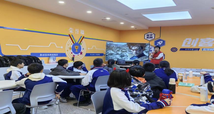 激光扫描仪的光束轻轻掠过小摆件,转瞬便将实物“复刻”成屏幕上的数字模型;指尖在切片软件上滑动,调整参数、优化细节,每一次修改都在为“创意落地”铺路。FDM打印机的嗡鸣似秋日私语,光固化打印机的灯光缓缓闪烁,激光切割机“咔嗒”一声,亚克力板便化作了棱角分明的精密零件。教室一隅的成品黑悟空静静陈列,灵动的造型、细腻的纹路,瞬间勾起学生们的兴趣。学生们凝神围观,目光在黑悟空成品与耗材堆叠、零件成型的瞬间来回切换,对创造的期待愈发浓烈。