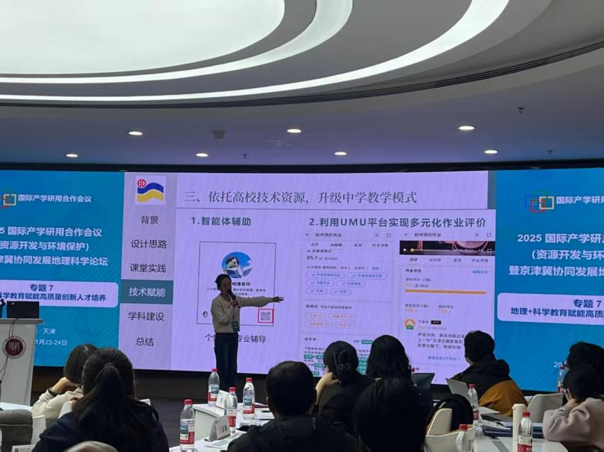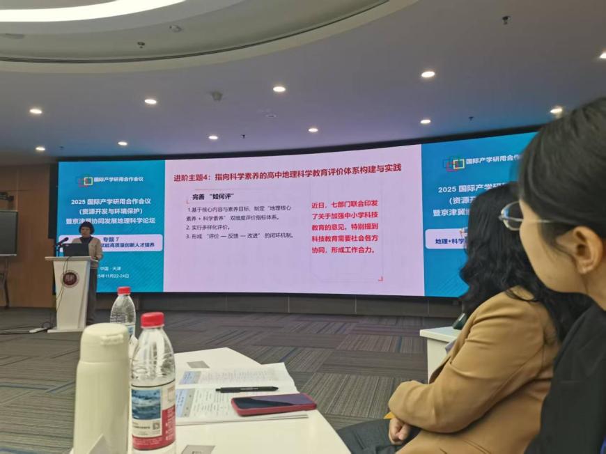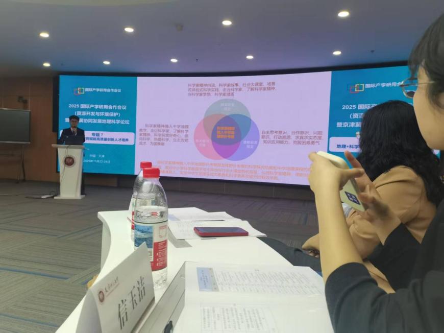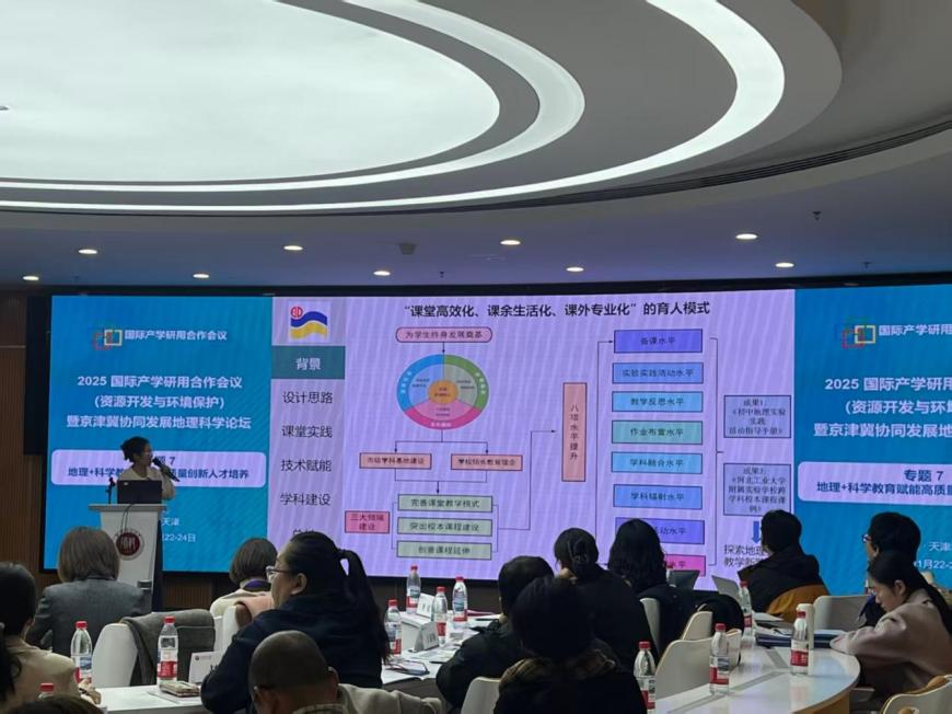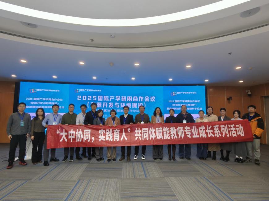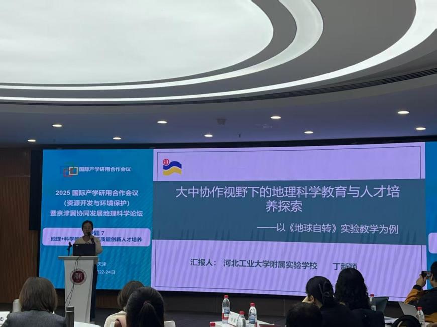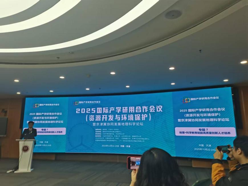 2025年11月22-24日,由教育部学校规划建设发展中心主办的“2025国际产学研用合作会议(资源开发与环境保护)暨京津冀协同发展地理科学论坛”在天津师范大学隆重召开。11月23日,河北工业大学附属实验学校地理组教师受邀参会,聚焦专题7“地理+科学教育赋能高质量创新人才培养”,与来自京津冀地区的地理教育同仁们以及高校学子共探学科育人新路径。