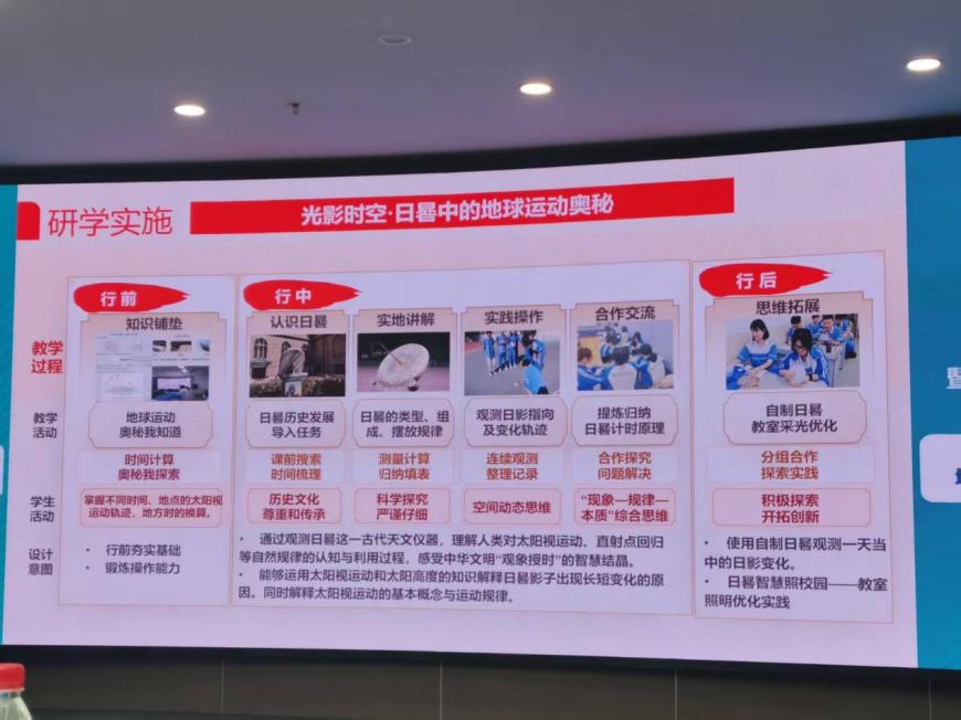 我校丁新颖老师作为汇报人之一,以“大中协作视野下的地理科学教育与人才培养探索——以《地球自转》实验教学为例”为题作现场报告。汇报中,她从大中衔接的视角出发,结合我校作为市级地理学科建设基地的研究成果,详细阐述了高校资源与中学教学深度融合的具体路径,通过《地球自转》实验教学的案例展示,生动呈现了如何将抽象地理原理转化为具象探究实验,为培养学生科学思维与创新能力提供了可借鉴的教学方案。其鲜明的实践导向、扎实的研究积累赢得了现场参会者的广泛关注与认可,充分展现了我校地理教师的专业素养与教研实力。