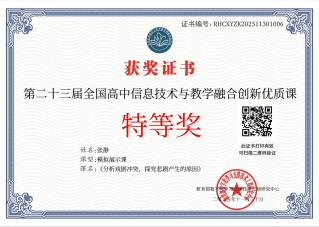 近日,第二十三届全国中学信息技术与创新学术活动圆满落幕,张静教师凭借精心打磨的《分析戏剧冲突,探究悲剧产生的原因》模拟展示课,在众多参赛作品中脱颖而出,荣获全国特等奖,以扎实的教学创新实践彰显了AI与语文教学深度融合的独特魅力。
