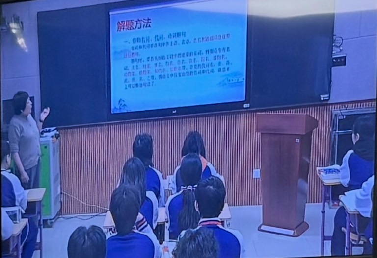 本次活动以毕业班教学技能展示为核心载体,既是对学校毕业班教学工作的一次集中检阅,更是对强校工程建设成果的生动诠释。活动现场,高三语文教师雷萍率先登台,以“文言文断句”专题复习课为切入点,深耕文本、巧设情境。课堂上,雷老师立足高考考情,梳理断句规律,引导学生在文言字词的肌理中探寻文脉逻辑,在互动探究中掌握解题技巧,将知识传授与能力培养深度融合,充分展现了我校毕业班教师扎实的教学功底与精准的备考思路,赢得了在场领导与教师的一致好评。随后,吕家艳、黄东霞、杨春玲、张昱四位教师依次开展抽题、说题、讲题展示。四位教师随机抽取高考相关考点,从容梳理命题逻辑、精准剖析考点内涵、清晰阐述解题策略与教学方案,从学情分析到方法指导再到素养落地,每一个环节都彰显了对教材的深刻理解、对考纲的精准把握。他们以鲜明的教学风格、严谨的教研态度,生动呈现了我校教师在毕业班教学深耕细研的丰硕成果,也印证了强校工程中教师专业成长的坚实步伐。