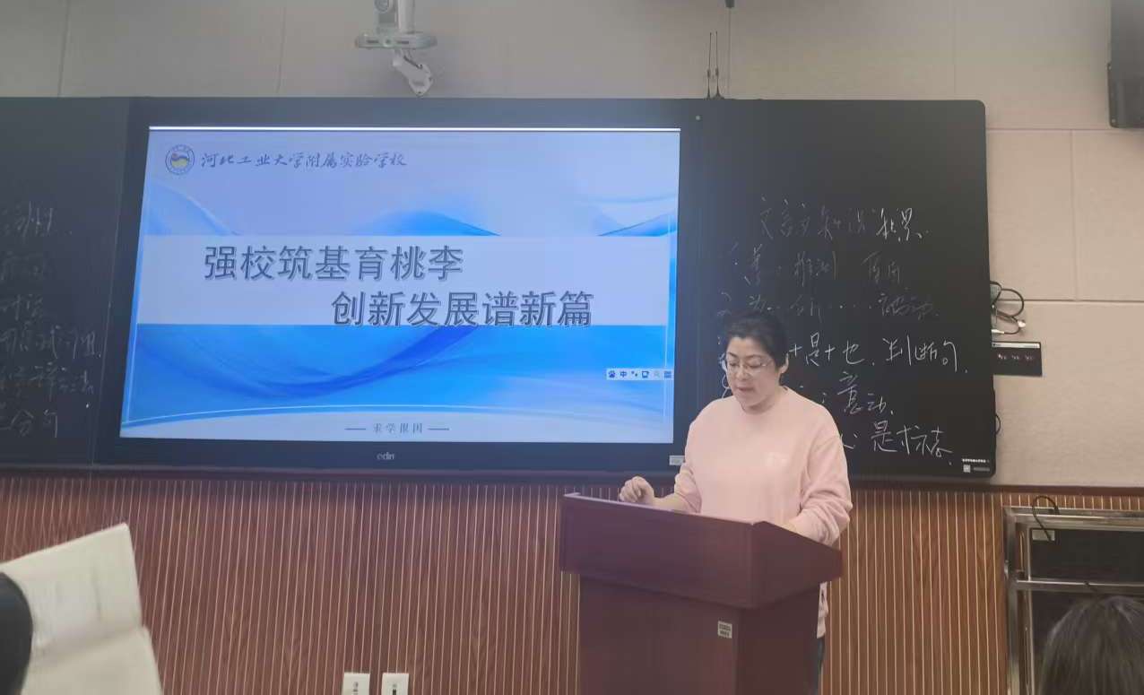 疏梅吐蕊香盈远,杏苑精研硕果稠。2025年12月26日,河北工业大学附属实验学校洋溢着笃学深耕的浓厚氛围,毕业班教学技能展示暨强校工程成果汇报活动如期举行。红桥区教育局副局长郝连婷、中学科科长左连海莅临现场指导,校长魏艾、副校长石毅及教务主任艾丽丽与全区高三教师共同观摩,共话毕业班教学提质与强校建设发展之道。