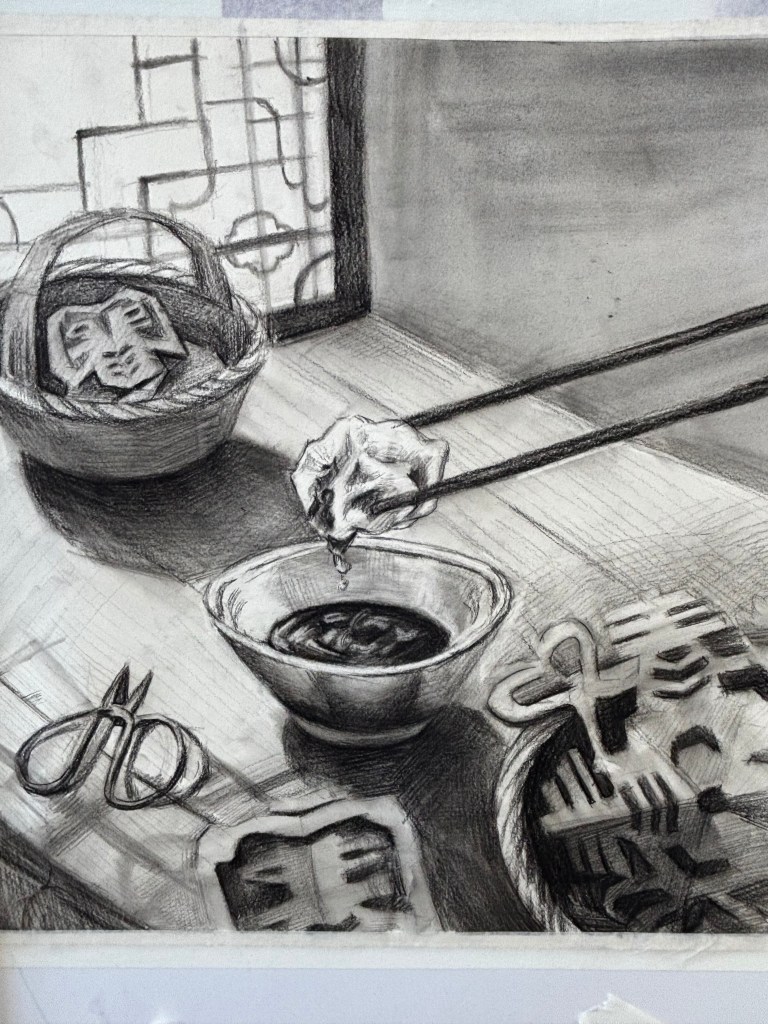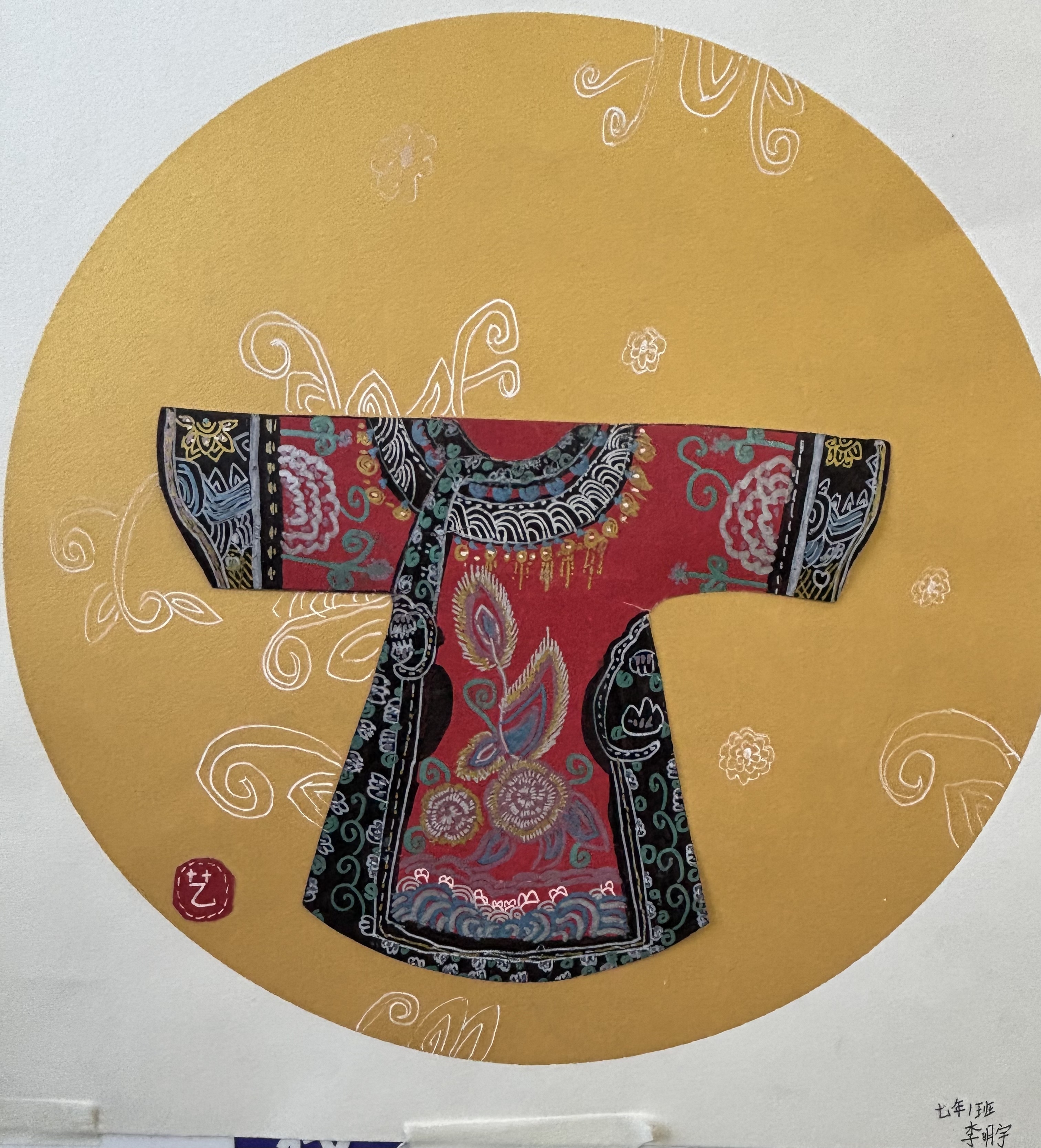 随着主持人范敬文老师的宣布,美术作品颁奖环节缓缓拉开帷幕。展区内,一幅幅作品静静铺陈:笔墨酣畅的水墨山水晕染着东方意境,色彩斑斓的京剧脸谱勾勒着非遗神韵,剪纸等以传统技艺为灵感的手工制品,针脚细腻、构思巧夺。每一件作品都凝结着同学们对传统美学的独特感悟与大胆创想。颁奖台上,获奖同学身着整洁校服,眼神明亮、笑容真挚,接过荣誉证书的双手微微用力,既藏着创作时的匠心坚守,更透着对传统文化的赤诚热爱。这份定格在纸笔间、指尖上的匠心之美尚未落幕,舞台上的动态艺术盛宴已悄然酝酿,将美育的浸润从静态画作延伸到灵动演绎。