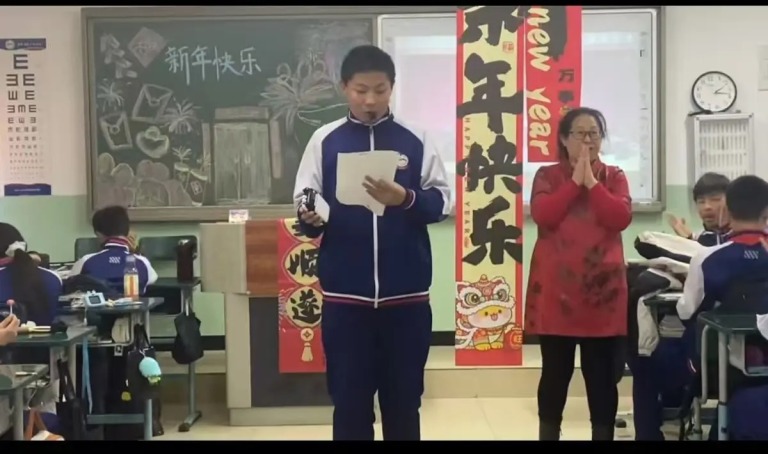 互动环节中,现场气氛持续升温。学校为各班精心准备的定制暖心小礼物,让同学们脸上绽放出灿烂笑颜。台上台下欢声笑语交织成歌,掌声与欢呼声经久不息,尽显师生同心、其乐融融的和谐景象。这场冬日联欢,不仅为寒意渐浓的校园晕染了融融暖意,更悄然拉近了师生间的距离。脉脉温情与款款感动浸润着校园的每个角落,也为即将开启的新一年奋斗征程,注入了昂扬饱满的正能量。