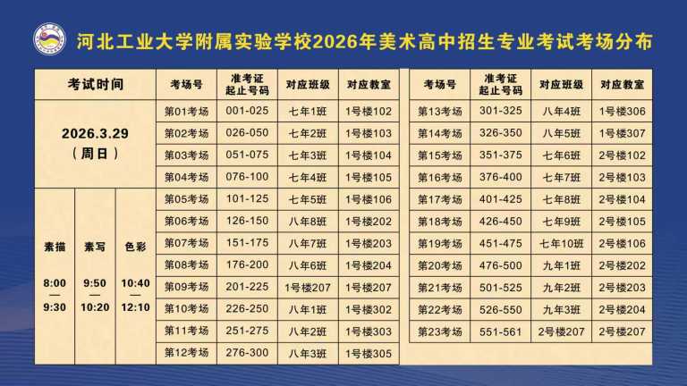 河北工业大学附属实验学校2026年高中美术专业考试将于2026年3月29日(周日)举行,现发布考试相关事宜,预祝所有考生取得理想成绩。